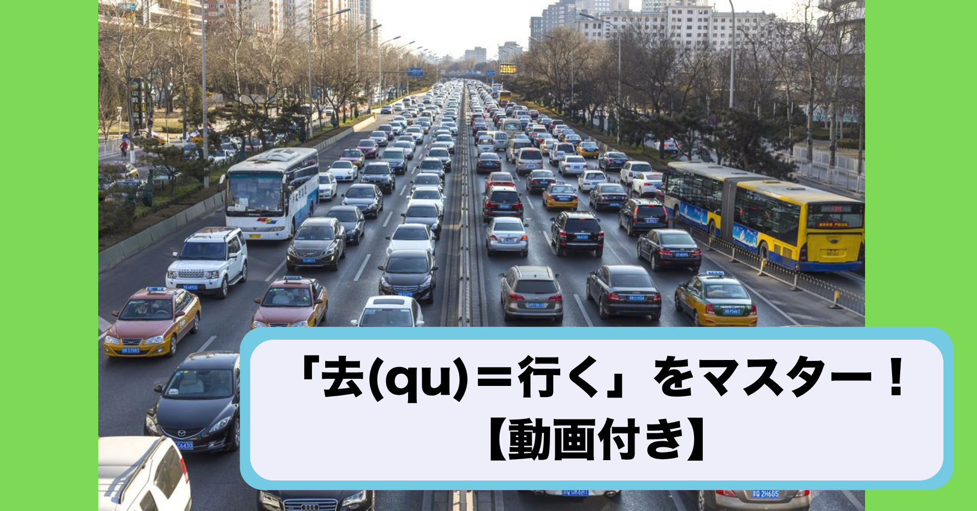 中国語の中で「qu」の音は、日本人が発音しづらい単語の代表。日本語の意味は「行く」なので、頻繁に使う表現ですね。