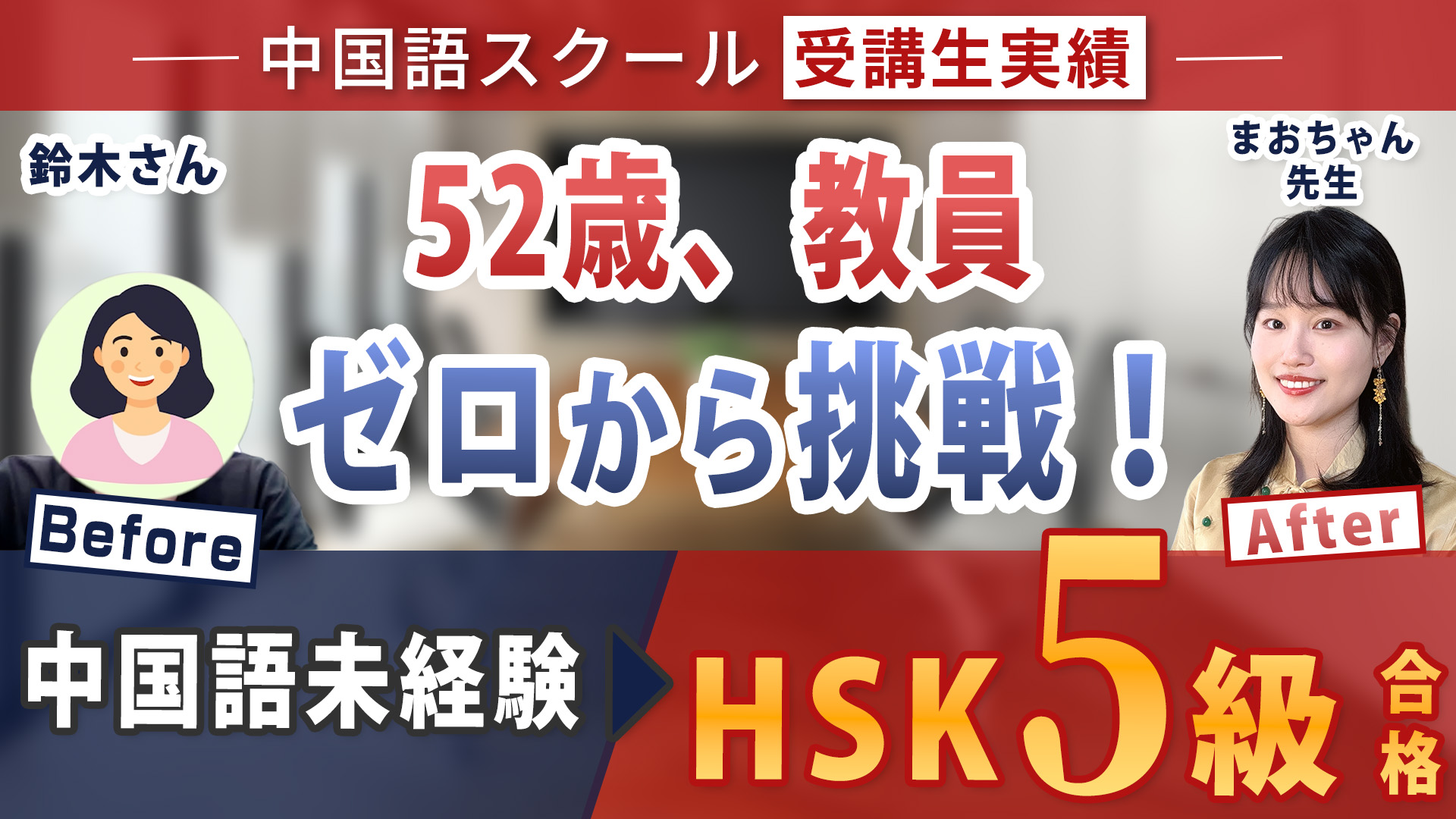 今回ご紹介するのは、中国で日本人学校の教員として働く鈴木さん。中国での生活を続ける中で、中国語を完全ゼロから学び始め、実生活でのアウトプットを重ねながらHSK5級合格を果たされました。