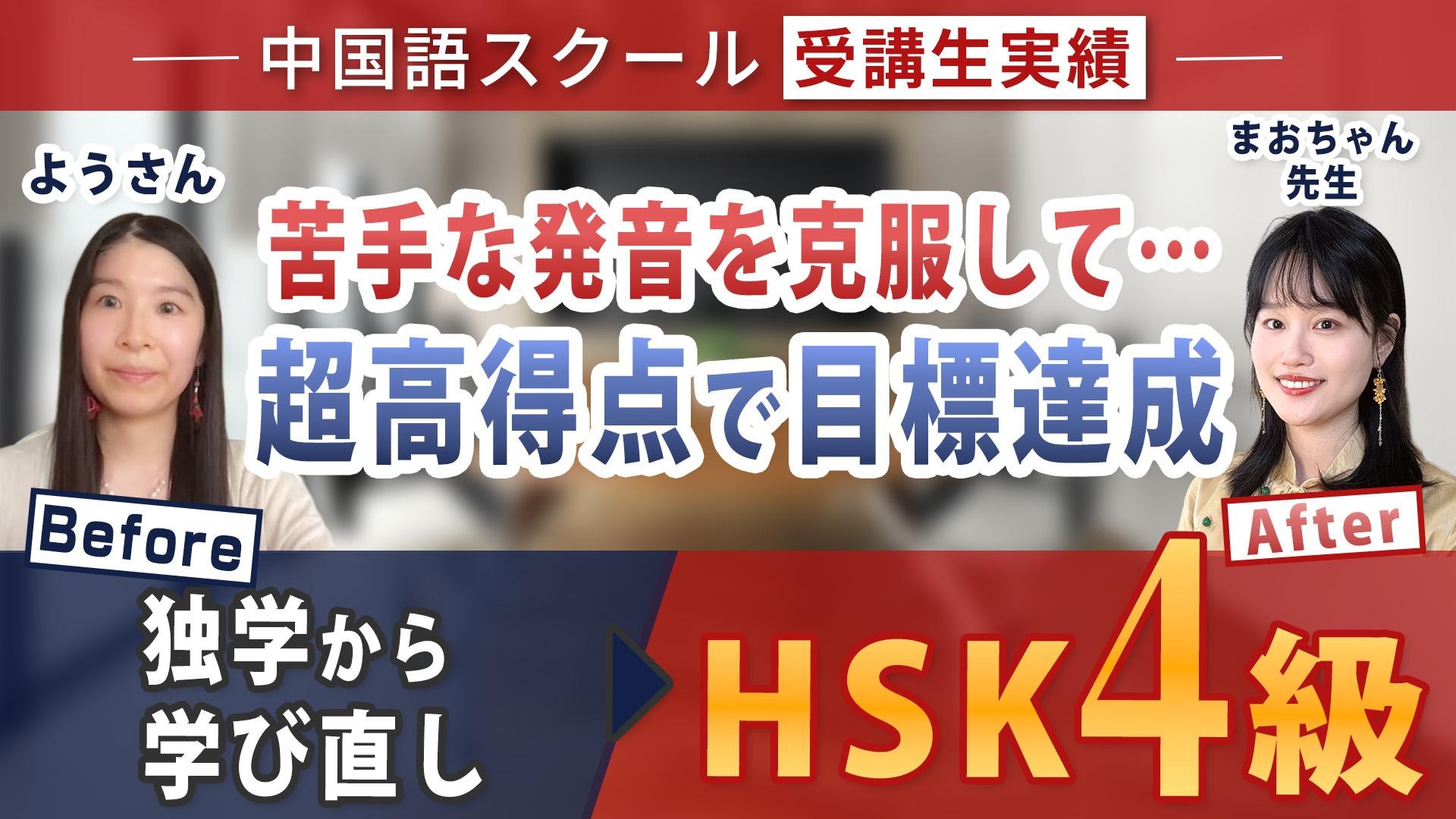 「中国語を学んで、本当に仕事に活かせるようになるの?」そんな疑問を持つ方に、ぜひ読んでほしいインタビューです。今回登場するのは、仕事をきっかけに「教養として中国語を身につけたい」と考え、フルーエントでの学習をスタートした、ようさん。独学経験を経て再スタートし、約1年間の学習でHSK4級に高得点で合格されています。